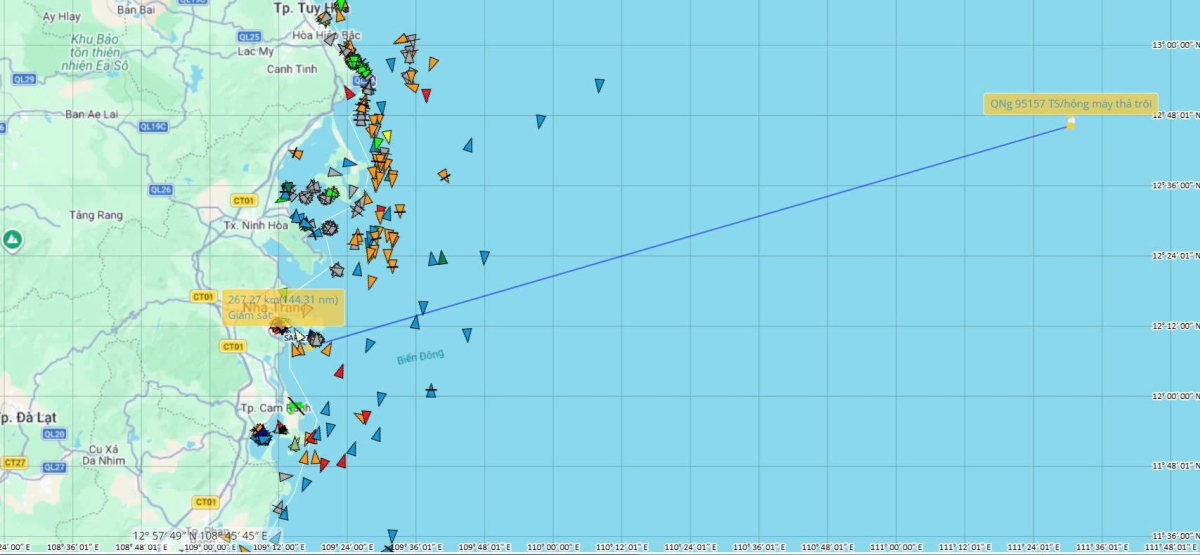 Ngày 09/03/2026, Trung tâm Phối hợp tìm kiếm cứu nạn hàng hải Việt Nam (Trung tâm) tiếp nhận thông tin về việc tàu cá QNg 95157 TS cùng 34 ngư dân khi đang hành nghề câu mực tại vùng biển cách Đông Bắc Nha Trang khoảng 90 hải lý, tàu gặp sự cố hỏng máy chính, không thể khắc phục được từ ngày 06/3/2026, tàu đang thả neo dù và bị trôi dạt với tốc độ khoảng 0,4 - 0,5 hải lý/giờ theo hướng 240°. Thời tiết khu vực có mùa gió Đông Bắc tăng cường mạnh cấp 5,6, giật cấp 7,8, biển động, sóng cao từ 3,0 - 4,0 mét; thuyền trưởng tàu cá đề nghị hỗ trợ cứu nạn khẩn cấp do có nguy cơ ảnh hưởng đến an toàn của tàu và tính mạng 34 ngư dân trên tàu.