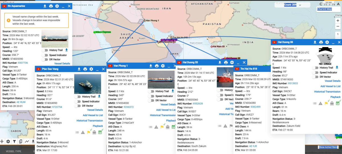 Tính đến cuối ngày 3/3, Cục Hàng hải và Đường thủy Việt Nam cho biết đã nhận được thông tin có 8 tàu và 160 thuyền viên Việt Nam đang hoạt động tại khu vực Trung Đông.