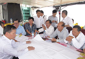 Đoàn khảo sát tại hiện trường luồng Định An- Cần Thơ Sau khi khảo sát, kiểm tra hiện trạng tuyến luồng hàng hải Định An- Cần Thơ, Đoàn khảo sát đã tổ chức cuộc họp, nghe các cơ quan, đơn vị báo cáo tình hình nghiên cứu, thực hiện nạo vét duy tu tuyến luồng hàng hải Định An- Cần Thơ thời gian qua, những khó khăn, vướng mắc và giải pháp thực hiện trong thời gian tới. Đoàn đã thống nhất về tính chất đặc biệt quan trọng của tuyến luồng hàng hải vào các cảng trên sông Hậu cũng như mức độ phức tạp do diễn biến tự nhiên của khu vực cửa Định An như tốc độ sa bồi và dịch chuyển bùn cát nhanh làm tuyến luồng không ổn định, thường xuyên thay đổi hướng tuyến luồng. Mặc dù đã được Chính phủ, Bộ GTVT quan tâm, đầu tư duy tu nạo vét hàng năm nhưng cũng chỉ duy trì được độ sâu luồng phía ngoài cửa trong thời gian ngắn (từ 1-2 tháng). Vì vậy, để đảm bảo việc xuất nhập khẩu hàng hóa bằng đường biển, đáp ứng phát triển kinh tế- xã hội của các tỉnh Đồng bằng sông Cửu Long, Đoàn kiến nghị Quốc hội, Chính phủ tiếp tục bố trí vốn thực hiện Dự án ĐTXD luồng cho tàu có trọng tải lớn vào sông Hậu để giải quyết triệt để yêu cầu cấp thiết hiện nay. Trong thời gian triển khai hoàn thành dự án trên, tiếp tục đề xuất giải pháp nạo vét và bố trí vốn để thực hiện nạo vét duy tu luồng hàng hải Định An- Cần Thơ đáp ứng cho tàu 5.000 DWT đầy tải và tàu 10.000 DWT giảm tải ra, vào. Phó Cục trưởng Đỗ Hồng Thái phát biểu tại cuộc họp