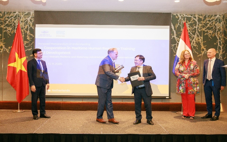 Bên cạnh đó, được sự đồng ý của Bộ Xây dựng, Cục Hàng hải và Đường thủy Việt Nam đã ký kết Biên bản ghi nhớ (MoU) hợp tác về đào tạo huấn luyện trong lĩnh vực hàng hải và đường thủy nội địa với Công ty STC B.V. (STC Next) của Hà Lan. Việc ký kết MoU này không chỉ tạo điểu kiện thuận lợi cho cán bộ, công chức, viên chức, người lao động trong lĩnh vực hàng hải, đường thủy của Việt Nam có cơ hội được tham gia đào tạo huấn luyện trong các chương trình, hoạt động giáo dục chuyên sâu về hàng hải và vận tải thủy từ một trong những công ty toàn cầu, có nhiều năm kinh nghiệm như STC Next, mà còn củng cố thêm mối quan hệ hữu nghị toàn diện giữa Việt Nam và Hà Lan.