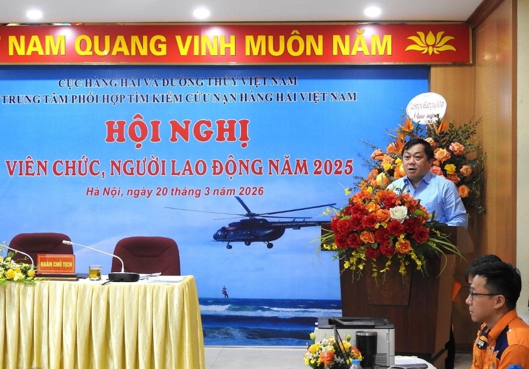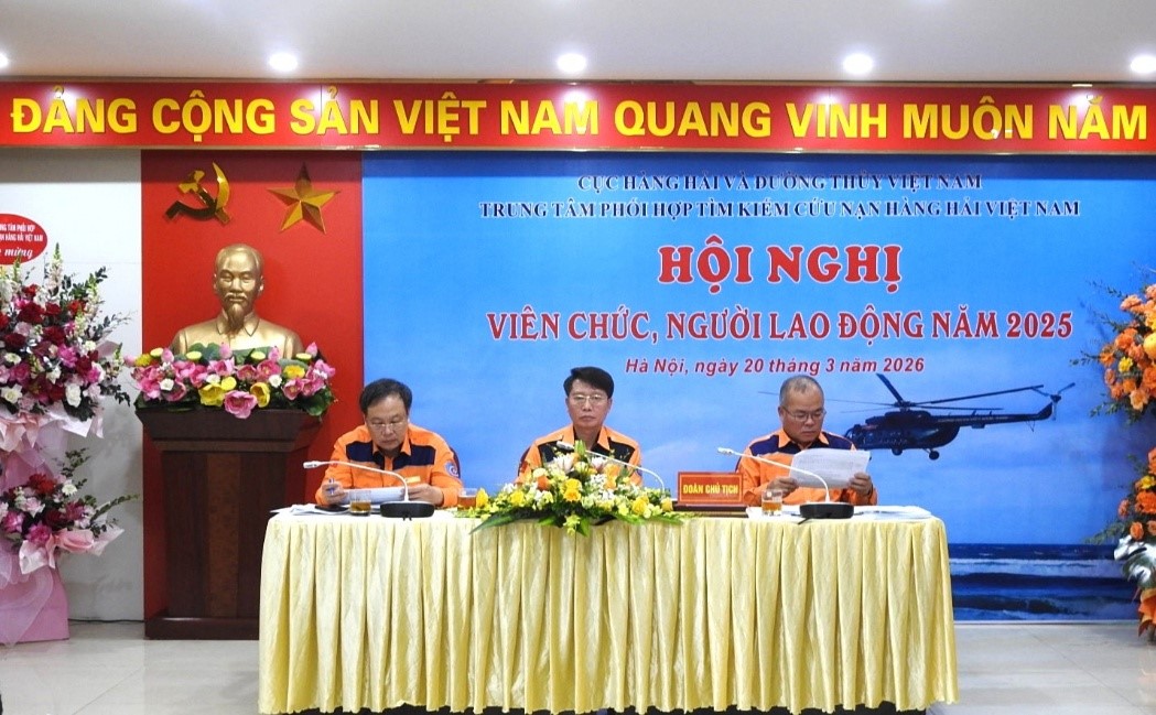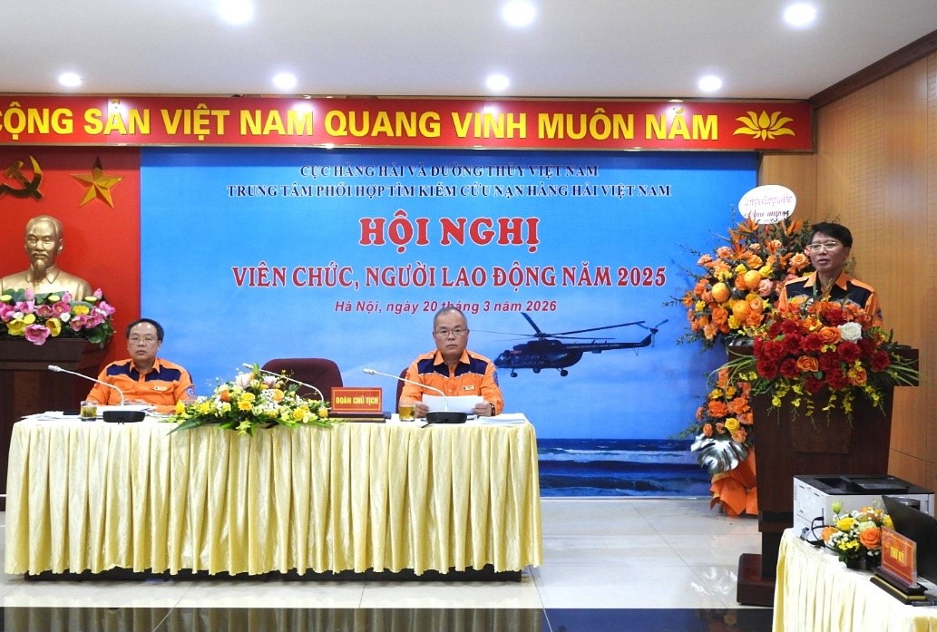 Chiều ngày 20/3/2026, tại trụ sở chính ở Hà Nội, Trung tâm Phối hợp tìm kiếm, cứu nạn hàng hải Việt Nam đã tổ chức thành công Hội nghị viên chức, người lao động năm 2025. Hội nghị được tổ chức theo đúng chỉ đạo của Cục Hàng hải và Đường thủy Việt Nam, là diễn đàn quan trọng phát huy dân chủ, trí tuệ tập thể, đánh giá kết quả thực hiện nhiệm vụ năm 2025 và đề ra phương hướng, nhiệm vụ năm 2026.