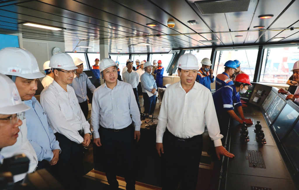 Bộ trưởng Trần Hồng Minh kiểm tra thực tế hoạt động tại Công ty TNHH Một thành viên Đóng tàu Nam Triệu.