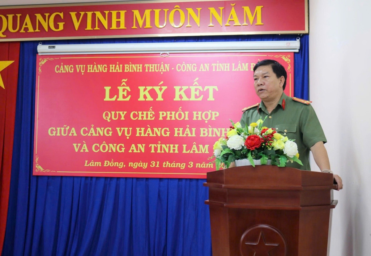 Phát biểu khai mạc buổi lễ, đồng chí Thượng tá Nguyễn Minh Tuyên - Trưởng Phòng An ninh kinh tế, Công an tỉnh Lâm Đồng nhấn mạnh, trên cơ sở tổng kết, đánh giá kết quả thực hiện Quy chế phối hợp thời gian qua và yêu cầu nhiệm vụ trong tình hình mới, nhất là sau khi sắp xếp, mở rộng địa bàn quản lý, việc ký kết Quy chế phối hợp mới là cần thiết nhằm kiện toàn cơ chế phối hợp giữa hai đơn vị, bảo đảm phù hợp với đặc điểm địa bàn, nâng cao hiệu quả công tác bảo đảm an ninh, trật tự, an toàn hàng hải tại khu vực.