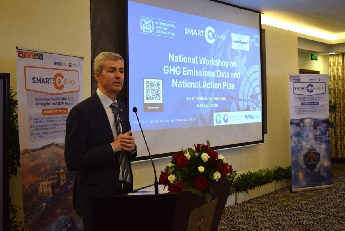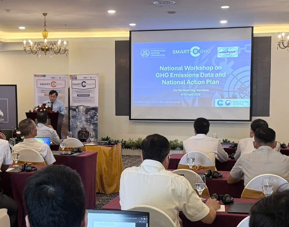Từ ngày 08 đến 10/4/2026, tại TP. Hồ Chí Minh, Cục Hàng hải và Đường thủy Việt Nam đã phối hợp cùng Tổ chức Hàng hải Quốc tế (IMO) tổ chức thành công Hội thảo chuyên đề về kiểm kê khí nhà kính (GHG) thuộc Dự án SMART-C GHG. Sự kiện nhằm mục tiêu hoàn thiện hệ thống dữ liệu phát thải và xây dựng lộ trình giảm phát thải bền vững cho ngành hàng hải Việt Nam.