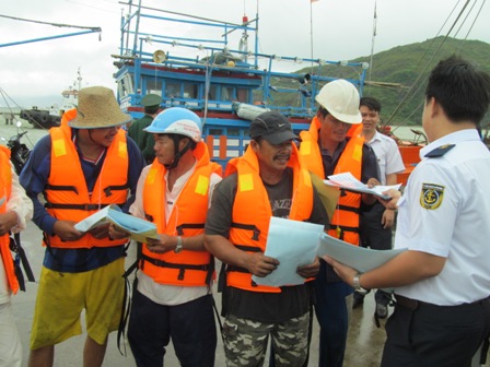 Nhằm thực hiện công tác tổ chức phổ biến, tuyên truyền an toàn giao thông hàng năm cũng như triển khai nhiệm vụ tại Nghị quyết số 88/NQ-CP của Thủ tướng Chính phủ; Kế hoạch số 801/CHHVN-AT&ANHH ngày 28/3/2013 về Kế hoạch hành động “Năm An toàn giao thông 2013” và Kế hoạch triển khai Chỉ thị 20/CT-TTg ngày 03/10/2013 của Thủ tướng Chính phủ về việc tăng cường thực hiện các giải pháp cấp bách nhằm ngăn chặn tai nạn giao thông hàng hải và đường thủy nội địa, được sự đồng ý của Lãnh đạo Cục HHVN, Phòng An toàn-An ninh hàng hải đã phối hợp với Cảng vụ Hàng hải Kiên Giang và Cảng vụ Hàng hải Quy Nhơn tổ chức tuyên truyền pháp luật an toàn giao thông hàng hải tới bà con ngư dân tại các xã ven biển khu vực Quy Nhơn, Kiên Giang vào ngày 25/11/2013 và ngày 27/11/2013. Hội nghị tuyên truyền có sự tham dự của Phòng An toàn An ninh hàng hải – Cục HHVN, Cảng vụ Hàng hải Quy Nhơn, Cảng vụ Hàng hải Kiên Giang, Trung tâm phối hợp TKCN hàng hải Việt Nam, Trung tâm phối hợp TKCN hàng hải VN khu vực II, III, IV, Công ty TNHH MTV Thông tin điện tử hàng hải Việt Nam, BCH Bộ đội Biên phòng tỉnh Kiên Giang, Quy Nhơn, Phòng Cảnh sát giao thông đường thủy tỉnh Kiên Giang, Quy Nhơn và đông đảo bà con ngư dân tại các xã ven biển 02 tỉnh Kiên Giang, Quy Nhơn. Tại Hội nghị tuyên truyền, sau khi nghe các bài tham luận của Cục HHVN, các Cảng vụ hàng hải, các Trung tâm PHTKCNHH khu vực và Đài Thông tin duyên hải Kiên Giang, Quy Nhơn, bà con ngư dân đã có những ý kiến trao đổi kinh nghiệm, phần lớn đều đánh giá cao các nội dung tuyên truyền đã sát với thực tế hoạt động của tàu cá, đánh giá được tình hình chung hiện nay và có những giải pháp rất đơn giản nhưng cũng rất hữu ích trong công tác phòng tránh tai nạn trên biển và đề nghị các cơ quan chức năng có thêm nhiều buổi tuyên truyền tương tự. Tiếp sau Hội nghị tuyên truyền, các đại biểu đã ra một số cảng cá trong khu vực để tuyên truyền và cấp phát áo phao cho bà con ngư dân.Một số hình ảnh tuyên truyền tại Quy Nhơn: