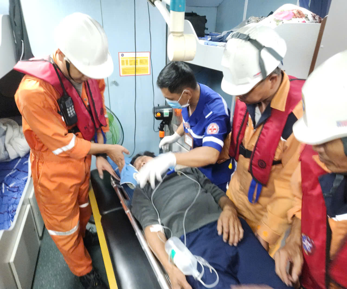 Trong suốt hành trình đưa nạn nhân vào bờ, đội ngũ y tế liên tục theo dõi, duy trì các biện pháp chăm sóc y tế nhằm ổn định tình trạng bệnh nhân.