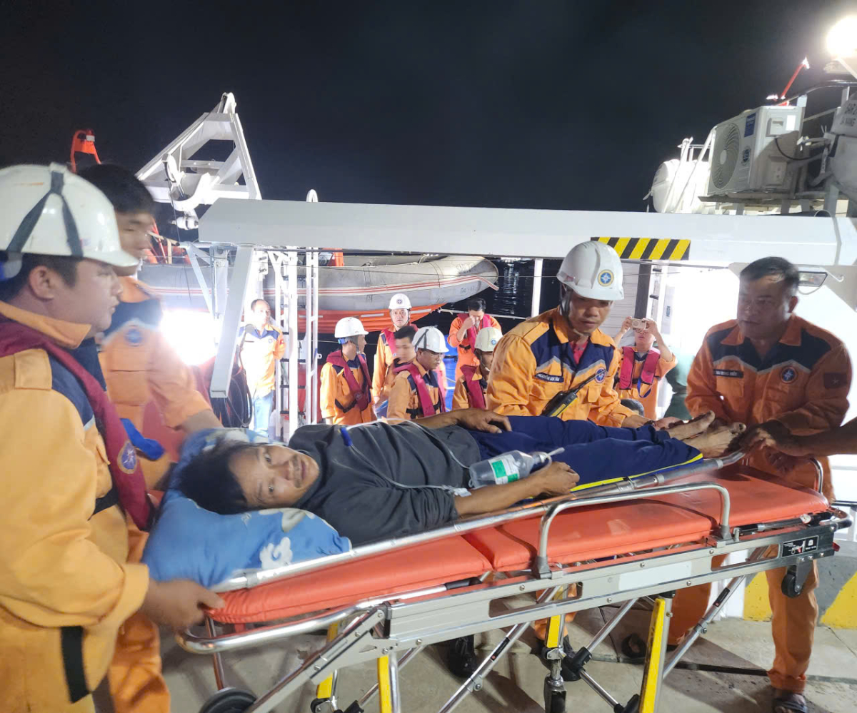 Đến 18 giờ 45 phút ngày 22/4/2026, lực lượng cứu nạn đã tiếp cận tàu cá QNg 90944 TS. Lực lượng cứu nạn cùng đội ngũ bác sĩ nhanh chóng lên tàu, thực hiện các biện pháp chăm sóc y tế ban đầu và chuyển nạn nhân sang tàu SAR 273.