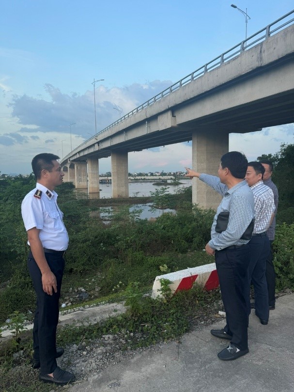 Đoàn công tác số 4 do Phó Cục trưởng Hoàng Minh Toàn phụ trách kiểm tra an toàn công trình cầu Đuống và cầu mới tại Ninh Bình.